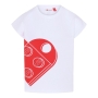 Mooie set van 2 LEGO T-shirts met korte mouwen. Een rood en een wit t-shirt. Op de voorzijde een afdruk van een LEGO plaat. Op de achterzijde aan de bovenkant een opliggende rubber opdruk van een LEGO steentje.