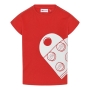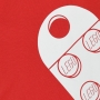 Mooie set van 2 LEGO T-shirts met korte mouwen. Een rood en een wit t-shirt. Op de voorzijde een afdruk van een LEGO plaat. Op de achterzijde aan de bovenkant een opliggende rubber opdruk van een LEGO steentje.