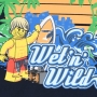 Stoer donker blauw LEGO T-shirt met korte mouwen. Op de voorzijde staat een opdruk van een LEGO surfer minifiguur in een surf omgeving en de tekst: 'Wet 'n' Wild'. De achterzijde is effen.