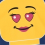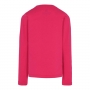 Mooi donkerroze LEGO T-shirt met lange mouwen. Op de voorzijde staat een opdruk van een LEGO gezicht met hartjes ogen en de tekst 'Girl PWR, 100% Love'. De achterzijde is effen.