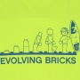 Mooi (fluoriserend) geel LEGO T-shirt met korte mouwen. Op de voorzijde staat een opdruk van een LEGO minifiguur evolutie met de tekst: 'Evolving Bricks'. De achterzijde is effen.