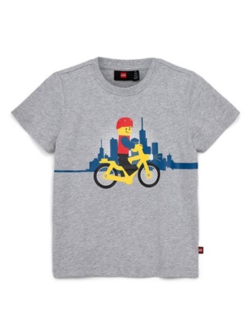 Bekijk dit iconische LEGO T-shirt met een leuke print op de voorkant van een LEGO minifiguur op een fiets. Is het niet leuk? De minifiguur draagt een fietshelm en fietst – met een grote stad op de achtergrond. Het T-shirt voor jongens en meisjes heeft een ribboord in de halsopening en is gemaakt van biologisch katoen. In één zijnaad zit een rood LEGO-logo. - Materiaal: 100% organisch katoen - Wasbaar op 40 graden - Print binnenste buiten strijken - Niet geschikt voor de droger - Korte mouwen - Nekopening met zachte rib voor extra comfort