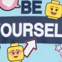 Leuk mint groen LEGO T-shirt met korte mouwen. Het T-shirt heeft een confetti motief en op de voorzijde staat een opdruk van verschillende LEGO hoodfjes en onderdelen met de tekst: 'Be Yourself'.