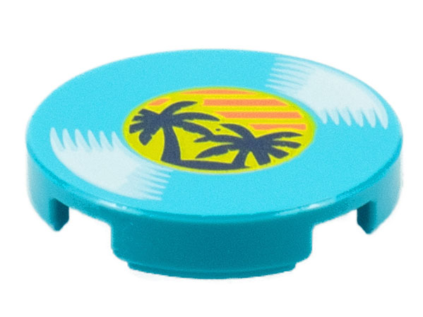 LEGO Tegel rond 2 bij 2 noppen met de opdruk van een lang speel plaat (vinyl) met palmbomen op het label.