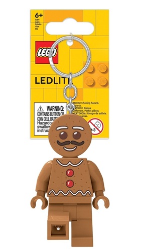 Een LEGO Sleutelhanger van een grote LEGO Peperkoek minifiguur met beweegbare armen, een helder LED lampje in beide voeten en een knop op het lichaam om de lampjes aan te zetten. Heel leuk voor aan een (school-)tas, jas of sleutelbos.