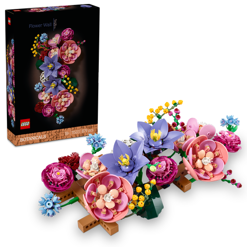 Beschikbaarheid Online status NIEUW Verwacht! Verwacht: 4 februari 2026 Winkel Gorinchem Niet in voorraad Wil je de natuur naar binnen halen? Maak een prachtig bloemenrek voor aan de muur met deze LEGO Botanicals Bloemenwand (11503) bouwset voor volwassenen. Je hebt geen groene vingers nodig: volg gewoon de instructies, zet het frame in elkaar en bouw stuk voor stuk de kleurrijke LEGO bloemen. De set bestaat uit 2 grote camelia's, 3 kleine camelia's, 2 clematissen, 3 ranonkels, 2 rode rozen, 1 hortensia, 3 korenbloemen, 2 mimosatakken, 2 wasbloemtakken en 2 grote bladeren, die je in elke gewenste combinatie aan de wand kunt bevestigen. Na het bouwen vormt de set een spectaculaire bloemenwand die zowel liggend als staand kan worden opgehangen. Je kunt het frame ook combineren met dat uit andere sets (apart verkrijgbaar) om een nog groter enopvallender display te creëren. De bouwset is een origineel cadeau voor vrouwen en mannen voor een verjaardag, housewarming of andere speciale gelegenheid. Deze set is ook beschikbaar in de LEGO Builder app, waar beginnende tuiniers en bouwers kunneni nzoomen, hun model kunnen draaien en hun voortgang kunnen bijhouden.