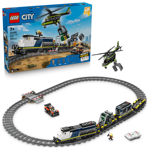 • De LEGO City Overval op politietrein (60508) bouwset bevat een gemotoriseerde trein, plus een helikopter, een rallyauto, rails en 6 minifiguren voor fantasierijk speelplezier