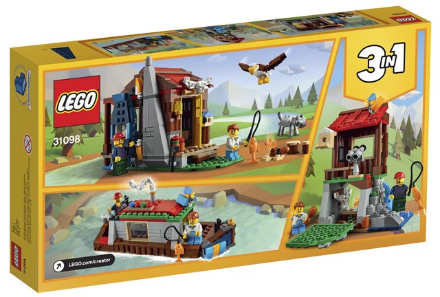 - Beleef steeds weer nieuwe outdoor LEGO avonturen met deze 3in1 set. Bouw de hut in de wildernis om en creëer een vogelobservatiepunt of een kanaalboot.