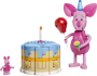 • Verstel Knorretje, met of zonder accessoires, door zijn hoofd te draaien, zijn oren te bewegen, zijn armen omhoog te brengen en zijn voeten te bewegen en plaats de taart open of gesloten naast hem