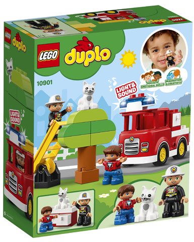 Speel alledaagse gebeurtenissen na met LEGO DUPLO Mijn eigen stad: een herkenbare wereld met moderne DUPLO figuren. Laat je kleine brandweerman of -vrouw anderen te hulp schieten met de 10901 Brandweertruck voor kinderen met blauw zwaailicht en sirene! Deze brandweertruck is eenvoudig te bouwen en heeft een la die open kan en een ladder. Peuters zullen het geweldig vinden om de brandweerman te helpen de kat uit de bouwbare boom te redden! - Inclusief 2 LEGO DUPLO figuren: een brandweerman en een kind, plus een figuur van een kat.  - De set bestaat uit een speelgoedbrandweerauto met zwaailicht en sirene, een ladder die kan kantelen, een la die open kan en een bouwbare boom.  - Druk op de knop om het licht en het geluid te activeren en schiet te hulp met deze leuke rode brandweertruck voor peuters!  - Help de dappere brandweerman op de ladder te klimmen om de kat uit de boom te halen. - Gebruik de moderne figuren om reddingsacties na te spelen en echte helden te prijzen. - Help je kind de basisvaardigheden van het bouwen onder de knie te krijgen met dit eenvoudig te bouwen model.  - Dit brandweerspeelgoed is een ideaal cadeautje voor peuters.  - LEGO DUPLO producten zijn speciaal ontwikkeld voor leuk en gemakkelijk spelen door kleine handjes.  - Er zijn diverse LEGO DUPLO Mijn eigen stad producten om te verzamelen. Hiermee kan je kind alledaagse situaties naspelen in een herkenbare DUPLO wereld.  - Combineer met de 10903 Brandweerkazerne voor nog meer brandweerplezier.  - De brandweertruck is ca. 10 cm hoog, 14 cm lang en 7 cm breed.