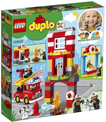 Speel alledaagse gebeurtenissen na met LEGO DUPLO Mijn eigen stad: een herkenbare wereld met moderne DUPLO figuren. Bezoek de eenvoudig te bouwen 10903 Brandweerkazerne en verzin allerlei verhalen. Leer samen met de brandweerlieden hoe je een kampvuur uit moet maken en hoe je veilig op een ladder klimt om de kazernehond uit de toren te redden. Help je peuter de brandweerlieden in de brandweertruck te zetten zodra ze worden opgeroepen, zet het zwaailicht en de sirene aan en scheur razendsnel de volgende heldhaftige reddingspoging tegemoet!