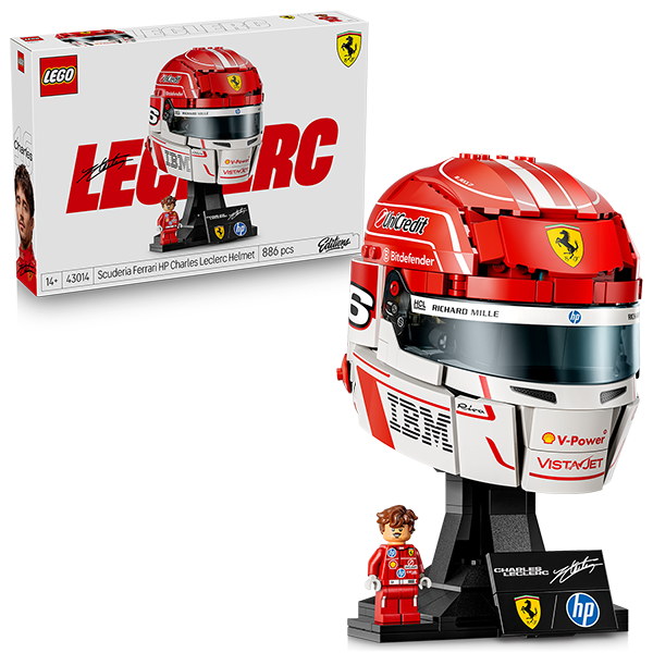 € 80,99 -10% Beschikbaarheid Online status PRE-ORDER Verwacht: 1 mei 2026 Winkel Gorinchem Niet in voorraad Geef de fantasie van kinderen een boost en laat ze hun eigen Formule 1 merch bouwen met de LEGO Editions Scuderia Ferrari HP helm van Charles Leclerc (43014) bouwset voor tieners en F1 fans vanaf 14 jaar. Autoliefhebbers kunnen helemaal opgaan in de raceactie terwijl ze deze zeer gedetailleerde F1 replicahelm bouwen met LEGO stenen. Het model is uitgevoerd in Ferrari's beroemde kleur Rosso Corsa (racing red) en voorzien van gedrukte grafische decoraties, zoals het coureursnummer van Charles en andere persoonlijke details. Inclusief een minifiguur van Charles Leclerc en een plaatje met het merk en zijn handtekening. Zodra fans over de finishlijn zijn, kunnen ze de LEGO helm neerzetten als sportieve decoratie. Dit is ook een geweldig verjaardagscadeau voor tieners en F1 fans. Voor nog meer plezier is deze F1 bouwset ook beschikbaar in de LEGO Builder app, waar jonge coureurs pitstops kunnen maken om hun voortgang bij te houden en hun model te draaien. De set bevat 886 onderdelen.
