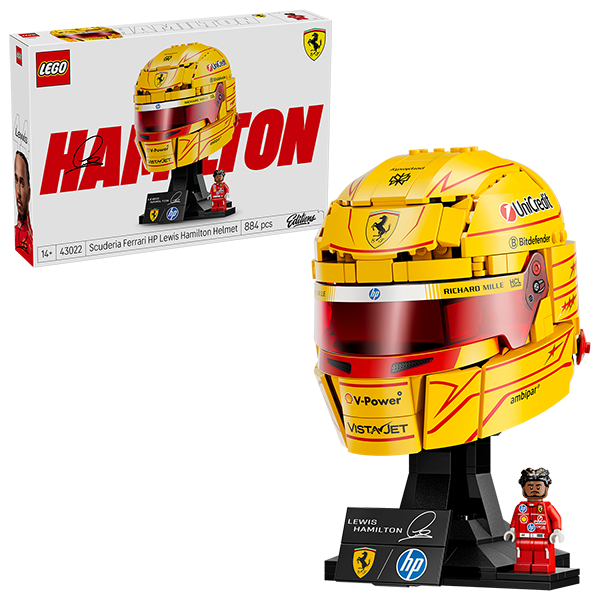 € 80,99 -10% Beschikbaarheid Online status PRE-ORDER Verwacht: 1 mei 2026 Winkel Gorinchem Niet in voorraad Breng een eerbetoon aan een Britse racelegende met deze LEGO Editions Scuderia Ferrari HP helm van Lewis Hamilton (43022) set voor Formule 1 fans vanaf 14 jaar. Autoliefhebbers zullen veel plezier beleven aan het bouwen van het displaymodel, datis uitgevoerd in het bekende Modena geel van Ferrari. De helm is zeer gedetailleerd en heeft gedrukte decoraties, waaronder het unieke coureursnummer van Lewis en een plaatje met zijn handtekening. Inclusief een minifiguur van Lewis Hamilton in zijn ro de Scuderia Ferrari HP racepak. Eenmaal voltooid vormt het model een prachtige sportieve decoratie die fans apart of samen met andere LEGO F1 helmen uit de collectie (apart verkrijgbaar) kunnen neerzetten. Hou hem zelf of verras tieners en autoliefhebbers met dit coole cadeau voor een verjaardag of de feestdagen. De set is beschikbaar in de LEGO Builder app, waar toekomstige racecoureurs pitstops kunnen maken om hun voortgang bij te houden en hun modellen te draaien. De set bevat 884 onderdelen.