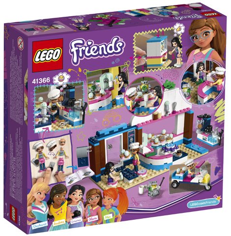 Technologie en bakken gaan goed samen in LEGO Friends 41366 Olivia's Cupcake Café met allerlei supercoole gadgets voor creatief rollenspel. Het Cupcake Café, geïnspireerd op de sushirestaurants in de zakenwijk van Heartlake City, heeft een tray die ronddraait met behulp van tandwielen. Het LEGO Friends Cupcake Café beschikt ook over een coole cupcakemachine, zitgedeelten binnen en buiten en een keuken met oven, gootsteen en benodigdheden om cupcakes mee te bakken. Voor nog meer creatief speelplezier heeft deze caféspeelset ook een kleine scooter om de speelgoedcupcakes overal in Heartlake City rond te brengen.