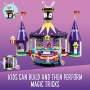 Winnaar "Speelgoed van het jaar 2021" in de categorie 8-9 jaar! Haal het plezier van de kermis in huis met de LEGO Friends Magische kermisachtbaan (41685) speelset. Zowel kinderen als volwassen zullen genieten van het bouwen van deze uitgebreide set. Dit 974-delige model vormt een inspirerend bouwproject en biedt vele creatieve speelmogelijkheden. In het midden staat een grote stoffen tent voor de goochelshow. Jonge goochelaars kunnen met behulp van een doos met een slimme functie de LEGO Friends minipoppetjes laten verdwijnen! Ze kunnen ook doen alsof ze een vuurspuwende jongleur zijn. De set bevat een speelgoedachtbaan, compleet met schattige konijnenkarretjes en een plek waar actiefoto's worden gemaakt, en een slingerattractie voor kinderen zonder hoogtevrees. En in het donker zien kinderen de coole glow-in-the-dark stenen! Neem kinderen mee naar Heartlake City, een wereld vol alledaagse helden en realistische omgevingen waar ze vrienden ontmoeten met wie ze zich kunnen identificeren.