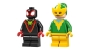 Er zijn 2 minifiguren en 2 dinovoertuigen: Miles "Spin" Morales in een stegosaurusauto en Electro op een dilophosaurusmotor, plus een groot webelement, een kristal verborgen in een rots en omgevingsaccessoires. In de doos bevat elk zakje de stenen en een grote startsteen voor een snel te bouwen model en personage, zodat het speelplezier meteen kan beginnen. Met intuïtieve instructies in de vorm van een kleurrijk stripverhaal.
