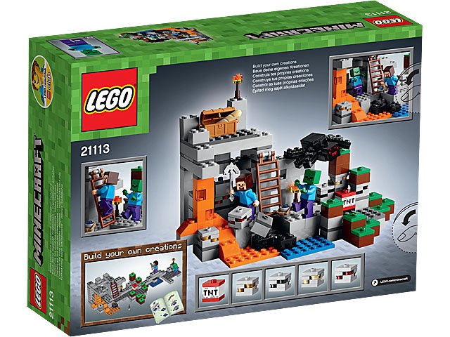 Waag je in de Grot in een gevaarlijke zoektocht naar essentiële grondstoffen! Hanteer de ijzeren hak om te graven en vecht tegen vijandige zombies en spinnen. Maak waardevolle ertsen en mineralen vrij door middel van dynamiet en combineer het stromende water en de lava om kostbaar obsidiaan te maken! Wanneer je klaar bent met vechten en ontginnen, kan je je energieniveau terug op peil brengen met de kist vol brood. Wees voorzichtig! Bouw de set om voor meer LEGO Minecraft creaties!