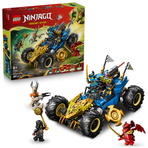Jongens en meisjes vanaf 8 jaar kunnen urenlang genieten van snelle actie met de bouw- en speelset LEGO NINJAGO Jay's transformerende auto (71856).
