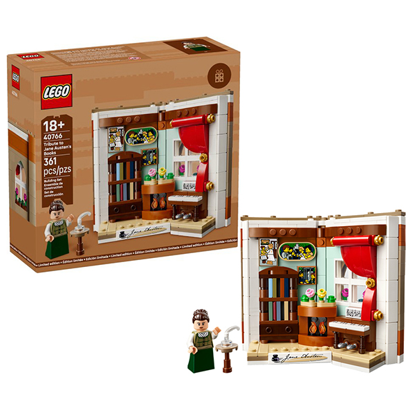 Winkel Gorinchem Niet in voorraad Vier Internationale Vrouwendag met dit LEGO Eerbetoon aan de boeken van Jane Austen (40766). Het gedetailleerde displaymodel bevat een minifiguur van Jane Austen in haar prachtige huis met een kleine schrijftafel met ganzenveer, een piano met bladmuziek, een boekenplank, bloemen, een gezellige open haard en schilderijen aan de muur met scènes uit verfilmingen van haar boeken. Aan de stevige basis is een naamplaatje bevestigd en van achteren ziet het displaymodel eruit als een boek.