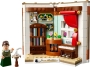 - Jane Austens huis – een minifiguur van Jane Austen staat bij haar open haard, omringd door haar schrijftafel, ganzenveer, piano, boekenplank, bloemen en schilderijen met scènes uit verfilmingen van haar boeken
