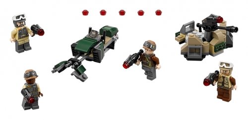 Stap op de Rebel speederbike en ga op zoek naar de troepen van het Keizerrijk. Zoek dekking in de loopgraaf als je de vijand in het oog krijgt, laad het kanon en help de Rebel Troopers hun tegenstanders op de vlucht te jagen! - Inclusief vier Rebel Trooper-minifiguren. - De set bestaat uit een speederbike met bevestigingsclips voor een noppenblaster en plaats voor een minifiguur, plus een loopgraaf-element inclusief draaibaar laserkanon met noppenschieter en extra munitie. - Stap op de speederbike, grijp je wapens en maak je op voor actie! - Laad het noppenschietende laserkanon en open het vuur. - Wapens: vier noppenblasters van de Rebel Troopers plus extra munitie. - Deze set biedt een passende bouw- en speelervaring voor kinderen van 6-12 jaar. - Speel spannende scènes na uit de enorm populaire film Star Wars: Rogue One. - Combineer de set met het Imperial Trooper Battle Pack (productnr. 75165) voor geweldige Star Wars: Rogue One-duels. - De speederbike is ca. 3 cm hoog, 11 cm lang en 4 cm breed. - Het loopgraaf-element is ca. 5 cm hoog, 9 cm breed en 7 cm diep.