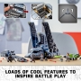 • De bouwbare speelgoedshuttle heeft verstelbare vleugels voor de landings- en vliegmodus, 2 wapens met veermechanisme en een rugvin die je op kunt tillen, zodat je gemakkelijk bij de dubbele LEGO minifiguurcockpit en gedetailleerde cabine kunt.