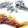 - New Republic E-wing – met een cockpit die open kan met plaats voor een LEGO minifiguur, ruimte onder de stoel voor een blasterpistool, een ruimte achter de cockpit voor de droid, 2 noppenschieters en een intrekbaar landingsgestel