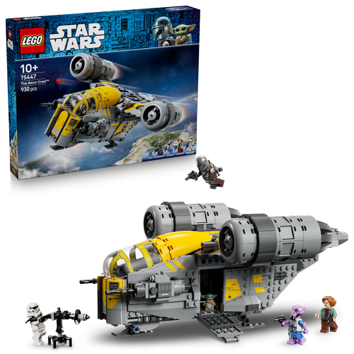 Beleef spannende confrontaties met het LEGO Star Wars De Razor Crest (75447) bouwspeelgoed voor kinderen. Bouw het bekende ruimteschip na met het ontwerp en de opvallende kleuren uit Star Wars: De Mandalorian en Grogu. Dit Star Wars voertuig is eenvoudig toegankelijk voor urenlang speelplezier met de LEGO minifiguren van de Mandalorian, kolonel Ward, Zeb Orrelios en een Imperial Remnant Stormtrooper en de LEGO figuur van Grogu. Til het dak van de cockpit op, open de zijpanelen om toegang tekrijgen tot de motor en het laadruim en klap de laadkleppen naar beneden. Dit coole cadeau voor jongens, meisjes en fans van Star Wars: De Mandalorian en Grogu vanaf 10 jaar bevat ook de Sentry E-Web blaster van de Stormtrooper, het jetpack van deMandalorian en andere accessoires om creatief spelen te stimuleren. Kinderen kunnen vol zelfvertrouwen bouwen met de LEGO Builder app die ze kunnen gebruiken om in te zoomen, hun model in 3D te draaien en hun voortgang bij te houden met de eenvoudig te volgen digitale instructies. - Laat kinderen hun eigen heldhaftige missies naspelen met een LEGO model van de Razor Crest (75447) in opvallende nieuwe kleuren, zoals te zien in Star Wars: De Mandalorian en Grogu - De Mandalorian met een blasterpistool en jetpack, een Imperial Remnant Stormtrooper met een blaster, kolonel Ward, Zeb Orrelios en een Grogu LEGO figuur - Plaats 2 LEGO minifiguren en Grogu in de cockpit, open de zijpanelen voor toegang tot de motor en het laadruim, klap de laadkleppen naar beneden en activeer de 2 noppenschieters - Voer de strijd op met het Sentry E-Web blaster bouwspeelgoed van de Imperial Remnant Stormtrooper - Dit bouwspeelgoed boordevol actie is een geweldig cadeau voor jongens, meisjes en fans van Star Wars: De Mandalorian en Grogu vanaf 10 jaar - Ontdek ook de andere LEGO Star Wars verzamelsets die zijn geïnspireerd op Star Wars: De Mandalorian en Grogu (apart verkrijgbaar) om grootse scènes opnieuw te beleven of originele verhalen te bedenken - De LEGO Builder app begeleidt kinderen op een bouwavontuur waarmee ze kunnen inzoomen, sets kunnen draaien met behulp van 3D-instructies en hun voortgang kunnen opslaan en bijhouden - Het Star Wars voertuig in deze 930-delige bouwset is ca. 13 cm hoog, 32 cm lang en 24 cm breed