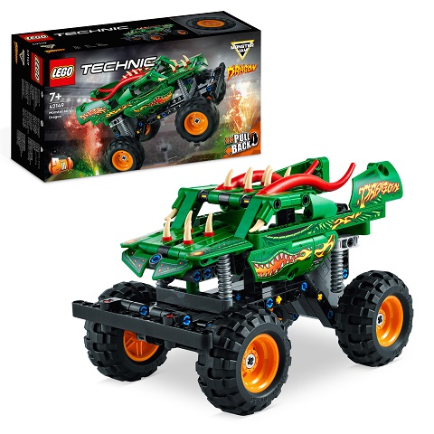 - Monstertruck – met deze LEGO Technic Monster Jam Dragon (42149) speelgoedtruck kunnen kinderen bouwen en racen door middel van de pull-backmotor. Een 2-in-1 model voor urenlang speelplezier