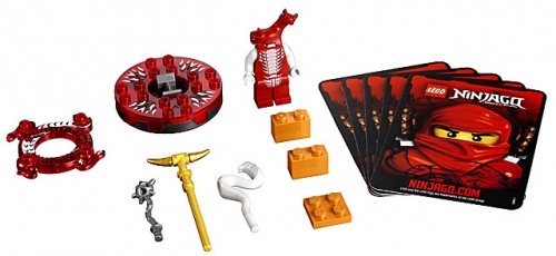 • Bevat een transparant rode spinner, transparant rode slangenkroon, LEGO stenen, een gouden wapen, 2 gewone wapens, een karakterkaart en 4 duelkaarten